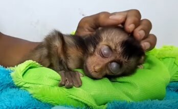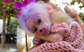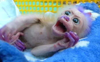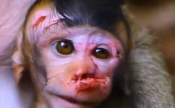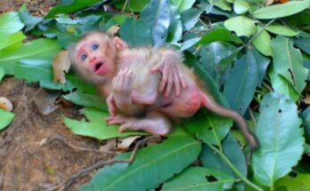 The sound was a needle of pure despair stitching through the quiet forest—a weak, raspy, yet relentless cry. Beneath a thicket of ferns lay the source: a sadness abandoned baby monkey, …