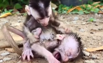 In the hollow of an ancient tree, hidden from the indifferent world, a scene of profound tragedy unfolded. Two tiny baby monkeys, twins no more than a few days old, …