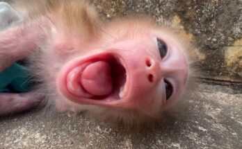 In the heavy silence of the forest at dawn, a sound broke through—a desperate, piercing, and relentless cry. Beneath the tangled roots of a banyan tree lay the source: a tiny, abandoned monkey. His fur was matted, his body trembling from cold and hunger. He was the very picture of a million pity, a soul so poor and forsaken that his entire being had become one single, loud plea. He was crying loudly for help, each shriek a raw, unmistakable signal of utter vulnerability.