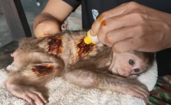 In the quiet corners of a dense forest reserve, a heartbreaking scene unfolded as a tiny newborn monkey lost its life after falling from a tree for the third time. The baby, barely a few days old, had struggled since birth to hold onto life—each fall a brutal reminder of how fragile the wild can be.