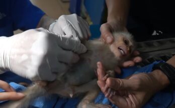 In the dense, unforgiving undergrowth of the jungle, a tiny figure moved with heartbreaking difficulty. This was Leo, a baby monkey whose life had become a relentless struggle. His most …