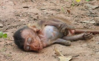 Weakness Poor Skinny Baby Monkey Was Lying on the Ground. Read More