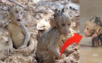 The rain had turned the forest floor into a treacherous, sucking trap. In the middle of a clearing, a heartbreaking struggle was taking place. The poorest little baby monkey, thin and …